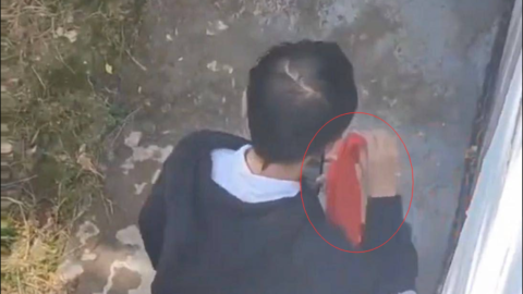 华农大女生宿舍楼下女子训斥小孩哥狂扇耳光