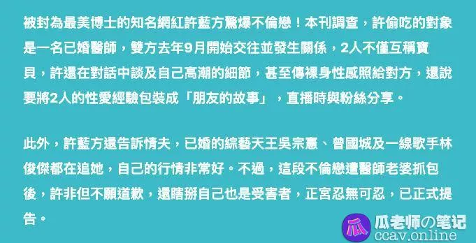 台湾著名主持人许蓝方被爆不伦恋私密视频流出