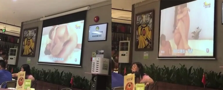 不知道的还以为这是什么攒劲小节目,某地中餐厅客流高峰期,本该在大屏幕展示的宣传视频不知道怎么就变成了成人AV,餐桌上的顾客看花了眼,餐厅的经理慌了神。
