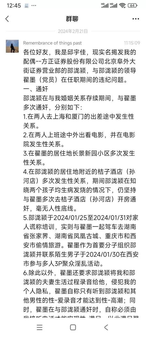 背景阜外方正证券人妻邵泷颖,与领导聚众银乱婚内出轨,被丈夫实名举报,刷爆网络
