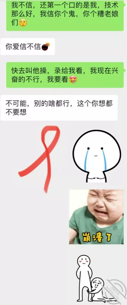 我也挺可怜,之前心心念念的等她老公来,然后体内释放她,让她B里夹满我的体液回去,让她老公舔,然后带着我的体液再被她老公Cao,可惜实现不了了,怎么就非要在姨妈来的时候回来,我俩今天聊天记录,这两天晚上我都没留她在我这睡,因为来姨妈了么,留下也干不了啥,我也觉得无聊,所以这两天每天晚上自己喝喝酒打打游戏,她就是来呆一会然后回自己家睡觉;这小娘们现在已经离不开我了,不跟我一起居然都睡不好了哈哈,不知道今天晚上跟他老公睡觉,会不会习惯性的喊个爸爸,或者给她老公玩个足交啥的,那样估计她老公马上就能想到她外面有人了吧,因为毕竟以前从来没玩过,哎,我的计划也泡汤了,心里太不爽了,还是要等下次了,不知道下次什么时候她老公才能再回来;已经第三天了吧,再有几天就可以Cao她了,很多兄弟们心心念念的小玩具,下次视频帖就可以安排上了