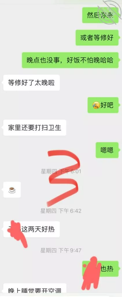 兄弟们好消息啊!上次不是准备强推未果吗,当时走了以后,我以为会不理我了,没想到我尝试着发个消息给他。居然回我了,也没有半点不高兴的样子,聊天记录自己看哈!之前不是有讲过,我喜欢自己烧饭吃,上次跟他吃饭的时候也铺垫过会邀请他来,今天以为他会生气,抱着试试的的状态,结果邀约成功。我连认证的纸条都已经准备好啦,哈哈哈,胜败在此一举了,务必拿下此妞,我的性福生活要来了哦,好期待她跪着给我口的样子,还有在Cao她的时候叫她给老公打着电话,太邪恶了,不说了,我要去准备晚饭啦,最后再附上两张他发来的照片吧!