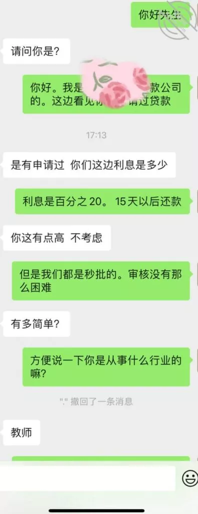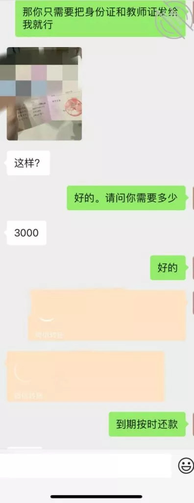 “我给你推两个网贷应应急吧,你是在编教师,百分之百下款。”