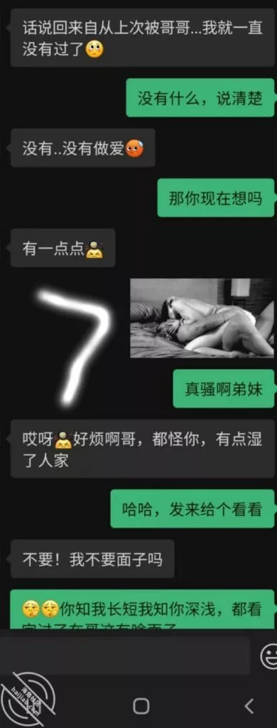 果不其然被我言中了,弟妹这边还有别的瞒着我的坑,她主动联系了我的小号,可能是之前的几千块得来的太过容易,俗话说有了第一次就会有无数次,放下了心里的坎弟妹也算食髓知味尝到了甜头。看弟妹这个架势,基本上就是背着老弟准备自己出来陪一次了,单线联系建立后就是如此轻松,女人如果有其他人架着就会特别在乎面子,当她自己一个人的时候反倒非常好说话。