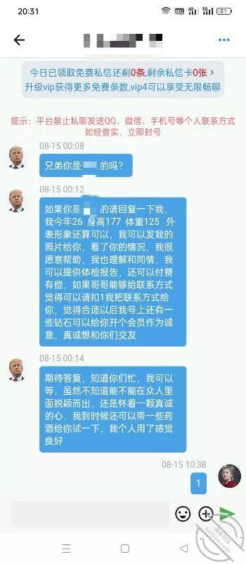 到了房间躺了没多久,就给我发来消息,先是一堆的不好意思啊,抱歉啊,放了你鸽子什么的,其实作为已经入圈一两年的我来说这都是正常现象,想要一次完美的活动其实并不容易,要么是夫妻靠谱,要么是单男靠谱,也得遇