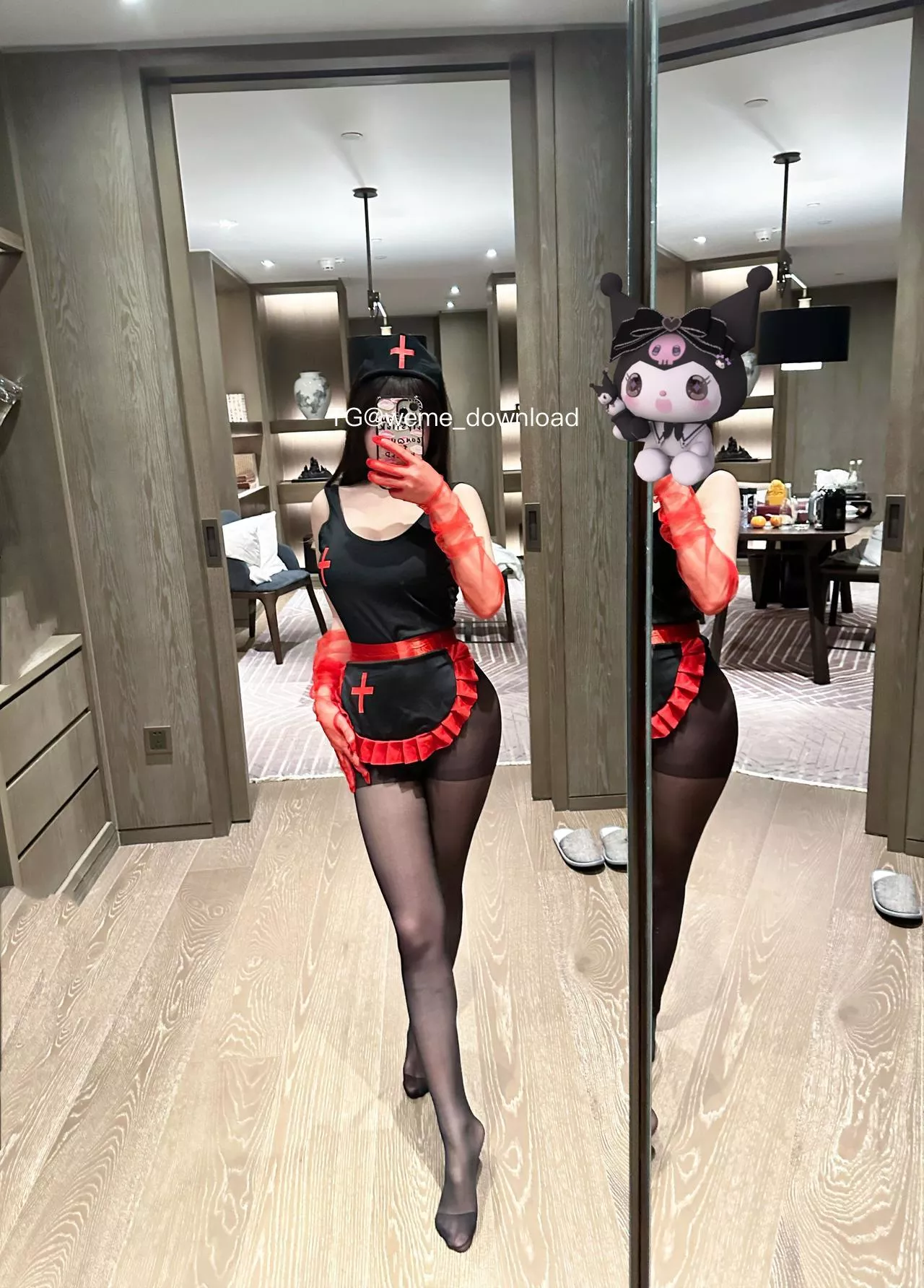 在这套86张高质量图片中,您将欣赏到黑色紧身连体服配鲜艳红色蕾丝装饰的美女,展现出性感与俏皮的完美结合。独特的红十字元素增添神秘感,与轻透手套搭配,造型既充满张力又精致。