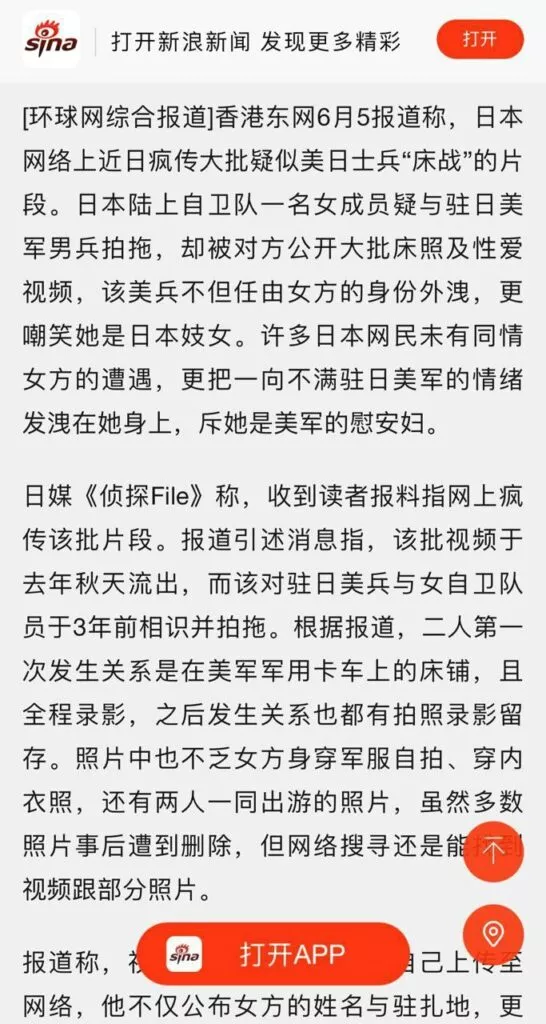 近日,日本网络上迅速传播了一系列疑似美军和日本自卫队士兵的做i视频。其中,一名日本陆上自卫队的女成员与驻日美军男兵的私密视频突然出现在多个网站,引发了广泛关注。这一事件不仅引起社会舆论的热议,还在一定程度上造成了影响。不少日本网民对事件中的女性并未表示同情,反而将对驻日美军的不满情绪发泄在了她的身上。
