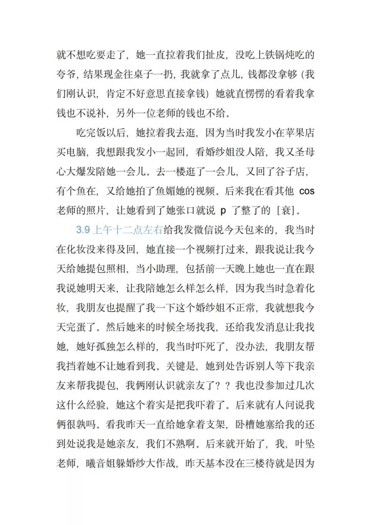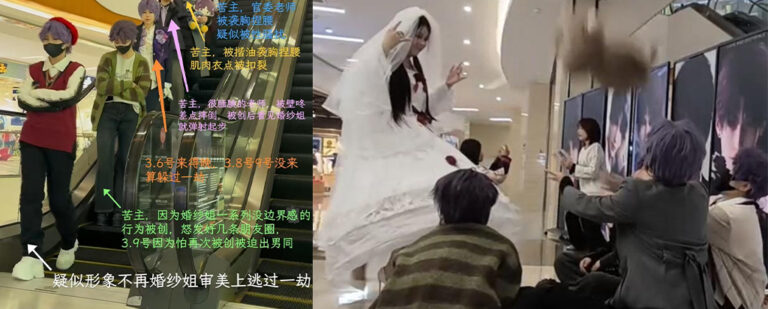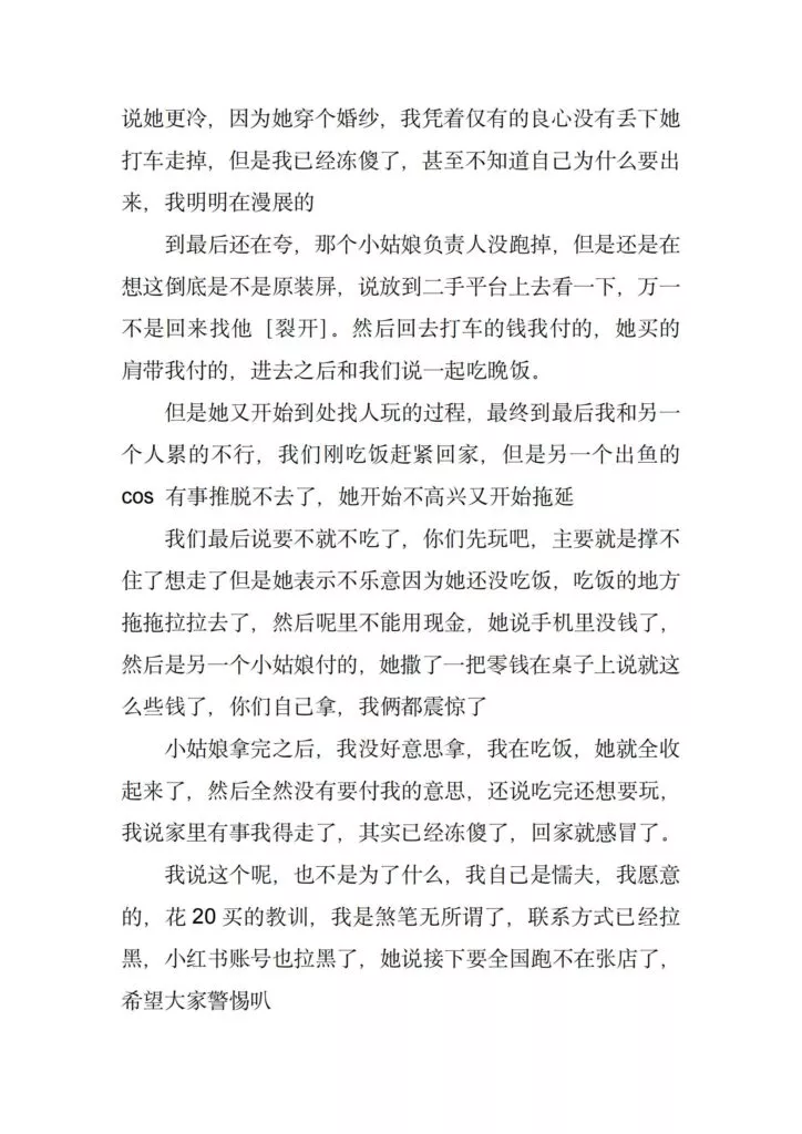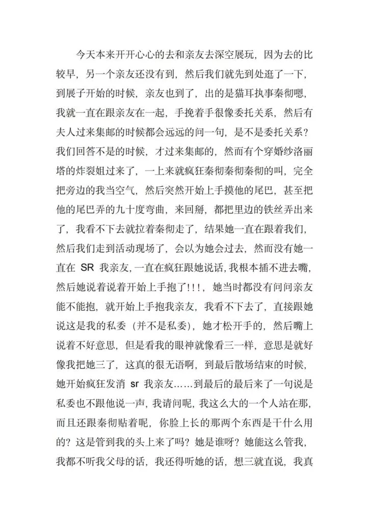 coaplay圈传来抽象大瓜,漫展本来是动漫爱好者和coser的盛典活动,一众爱好者的热闹派对,没想到却成了一些抽象人士的作案现场,一位穿着恋与深空国乙婚纱cos服装的女士成为了这场漫展所有参与者的噩梦。