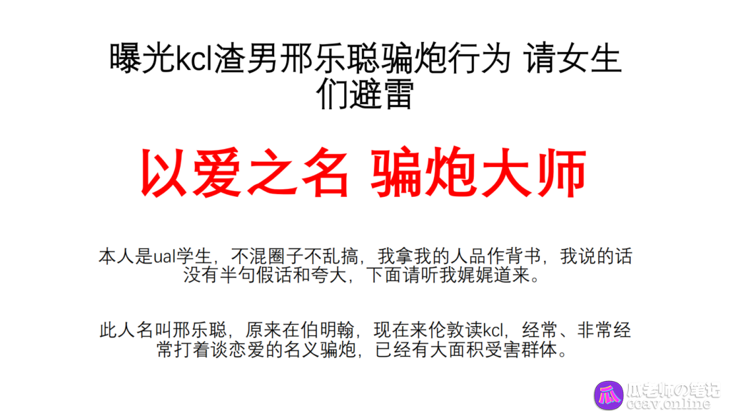 留学生圈又一大瓜,渣男邢乐聪骗炮海王,染指闺蜜好友被发现,26页ppt取证曝光