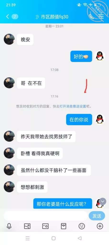 本来呢,我没当回事,因为我感觉这种情况的很多,最后都是不了了之,这个群友是新进群的,再别的同城群也没见到,应该是小白类型的,但是身上这股不折不扣的劲,让我感觉有点意思了,如果我能引导他成功开发老婆,我觉得还是蛮有意思的一件事,看看能不能跟上进度看看,怎么把良家开发成荡妇的