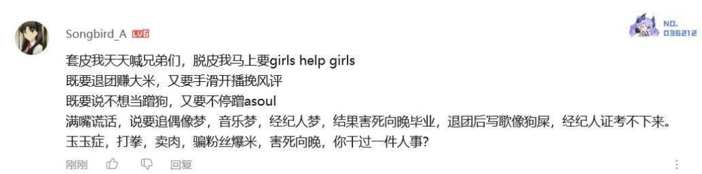 事件发生后,asoul向晚便被雪藏,李奕在脱离虚拟偶像团体后,改名李滇滇在b站重新出道,却第一时间背刺粉丝,首先要做的是觉醒女性力量