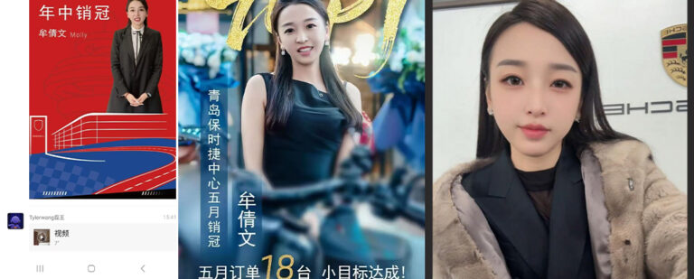 青岛保时捷中心女销冠牟倩文,自从以一年卖出170台车登顶销冠后,再度取得年中销售冠军,而最近更是被传出丑闻,出卖色相换取业绩,迷之通话录音更是令人想入非非。